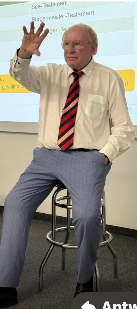 Ich habe selten einen so guten Vortrag gehört, noch dazu zu einem doch so eher trockenen und nicht unbedingt erfreulichen Thema! Prof. Dr. Weiler hat alles sehr lebendig und unterhaltsam rübergebracht. Meine Kunden und ich selbst waren restlos begeistert! Jeder ist mit genügend Wissen nach Hause gegangen und kann seine Angelegenheiten jetzt zu diesen Themen selbst regeln. Auch unser BBZ als Veranstaltungsort hat meine Gäste begeistert. Ich denke, diese Plattform lässt sich sehr gut zur Kundengewinnung und Kundenbindung verwenden.